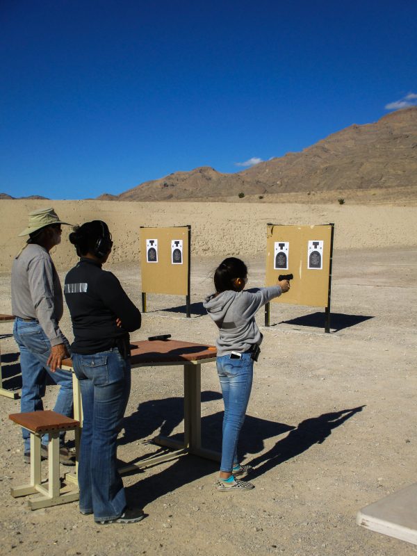 This November we had our inaugural basic pistol event in Las Vegas, NV! We had a sold-out line with a dozen students. We began very deliberately by establishing a solid grip and stance with a focus on the modified isosceles. Due to the needs of some shooters, we covered one handed shooting as well. Next, we worked on the “ABCs” of shooting — aiming, breathing, concentration and squeezing the trigger… plus follow through! Finally, we discussed natural point of aim.