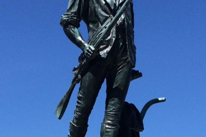On the base of the statue is inscribed the first stanza of Ralph Waldo Emerson’s Concord Hymn written in 1836:
