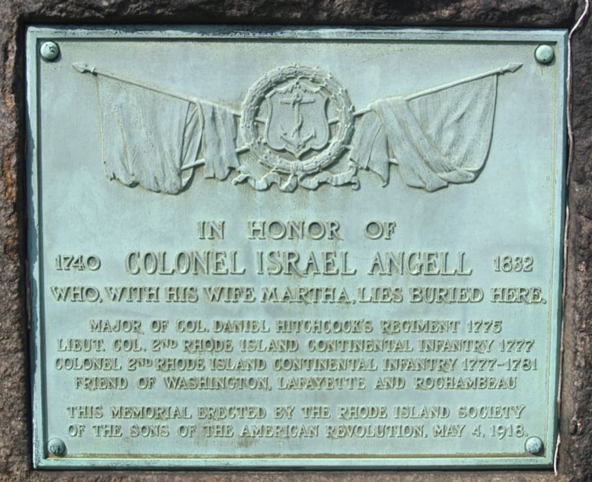 Israel Agnell served throughout the Revolutionary War, first commissioned as a Major and later being promoted to Lieutenant Colonel and finally (only a few days later) to Colonel with command of the 2nd Rhode Island Regiment upon the death of Colonel Daniel Hitchcock in 1777. Agnell served at Valley Forge in the winter of 1777 to 1778 as well as the following battles: