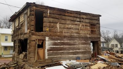 A Revolutionary War era two-story log structure was recently revealed during the demolition of a condemned building in Washingtonville, PA. The building was last used as a bar and storage